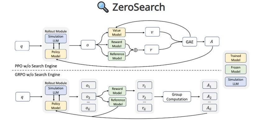 And finally: ZeroSearch, a reinforcement learning breakthrough that lets LLMs learn search and retrieval—without using real search engines. It’s cheaper, more stable, and surprisingly effective at training models to reason through noisy data and surface the right answers.